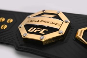 iconography. Eight stones border the plate, and for each victory in a championship bout, one of the stones will be replaced with a red ruby. The date and location of the win will be engraved adjacent to the stone. If an athlete successfully defends their belt more than eight times, red stones will be added to the right-side plate to continually acknowledge the accomplishment. The belt’s right-side plate is adorned by a gold UFC World Champion logo and bordered by eight stones. UFC’s jewelry partner, Bixler, will donate all stones and engravings.