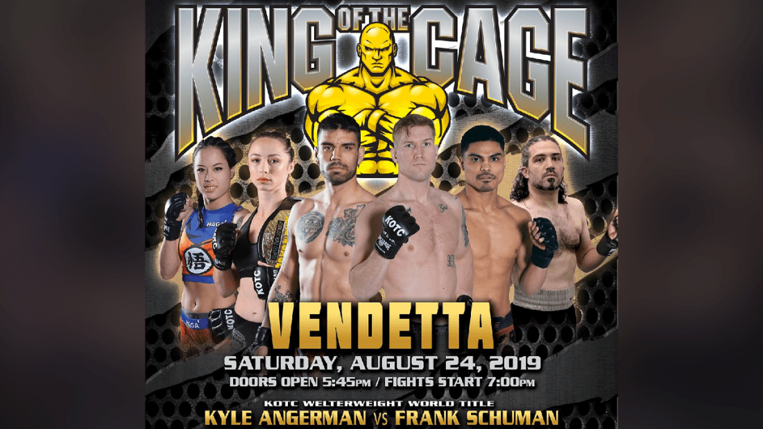 RANCHO CUCAMONGA, CA. (June 10, 2019) – King of the Cage will debut at Tyson Events Center in Sioux City, Iowa on Saturday, August 24, 2019 with a nationally broadcast event, headlined by two World Title fights featuring Kyle Angerman against Frank Schuman for the vacant KOTC Welterweight World Title and current champion Jayme Hinshaw defending her belt against Grace Cleveland for the KOTC Women’s Atomweight Title. Also featured on the card will be Israel Padilla and Drako Rodriguez. There will be twelve fights on this exciting card.