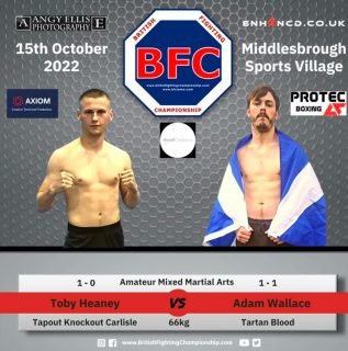 “I like it mate, you’ve done your homework, I appreciate that thank you. Yes, me and Toby were meant to fight during the pandemic but unfortunately, that show was cancelled. Fast forward two years we’re gonna get it done. This is an interesting bout, Toby is 1-0 with a win over Jack Lennon by guillotine (big shout out to wee Jack brilliant lad) I’m 1-1 with my win also being against Jack but I won by decision. I’m a fan who fell in love with making that walkman, I started off training just over 3 years ago by taking part in the Ultra MMA events for cancer research. I lost my charity fight, I then took a debut bout against Jack and I won that. I think Toby has probably been around about the same time training as me, the only difference being obviously he trains full time with a team, shout out to Mike Tedham and his lads at Tapout Knockout Carlisle, another great bunch of lads. I fought Jack on Mike’s show Vision MMA Combat UK in my debut a few years back so I do like these boys, they’re all business man. What do I make of toby? Good fighter, he will have gotten better over the last two years obviously but as have I, so that makes for a better fight. Toby seems like a decent lad as I said already it’s all business. we’re gonna have some fun with it, we’re probably gonna chat some shit back and forth, get in the cage make each other bleed then have a pint after it. Let’s put on a show Toby son, it’s gonna be a great night for everyone Involved.”