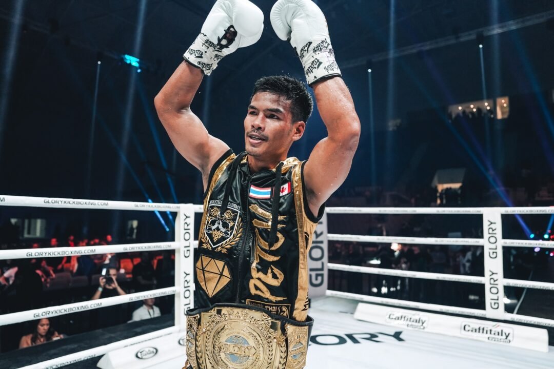 Featherweight champion ‘Petch’ (169-39-3, 27 KO) retained his title in the last fight of the night. It was a vintage performance from the Thai star as he recorded his seventh title defense with a decision victory over game Spaniard David Mejia (61-16, 18 KO). This victory puts him second only to Rico Verhoeven for the most title defenses in GLORY history.