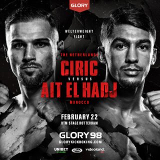 GLORY 98 will be available to watch live February 22 exclusively on Videoland in the Netherlands, DAZN in France & Belgium, and Bally Live & Stadium across the United States & Canada. For full global listings, please visit GLORYKickboxing.com.